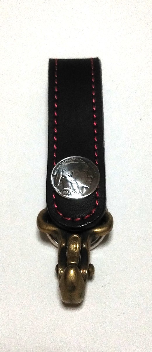 - ベルトループキーホルダーヌメ革ブラックインディアンコンチョ