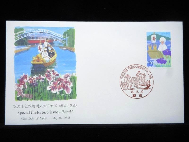 - ふるさと切手 筑波山と水郷潮来のアヤメ 茨城県 平成15年 2003年 初日カバー FDC 日本切手 L-312