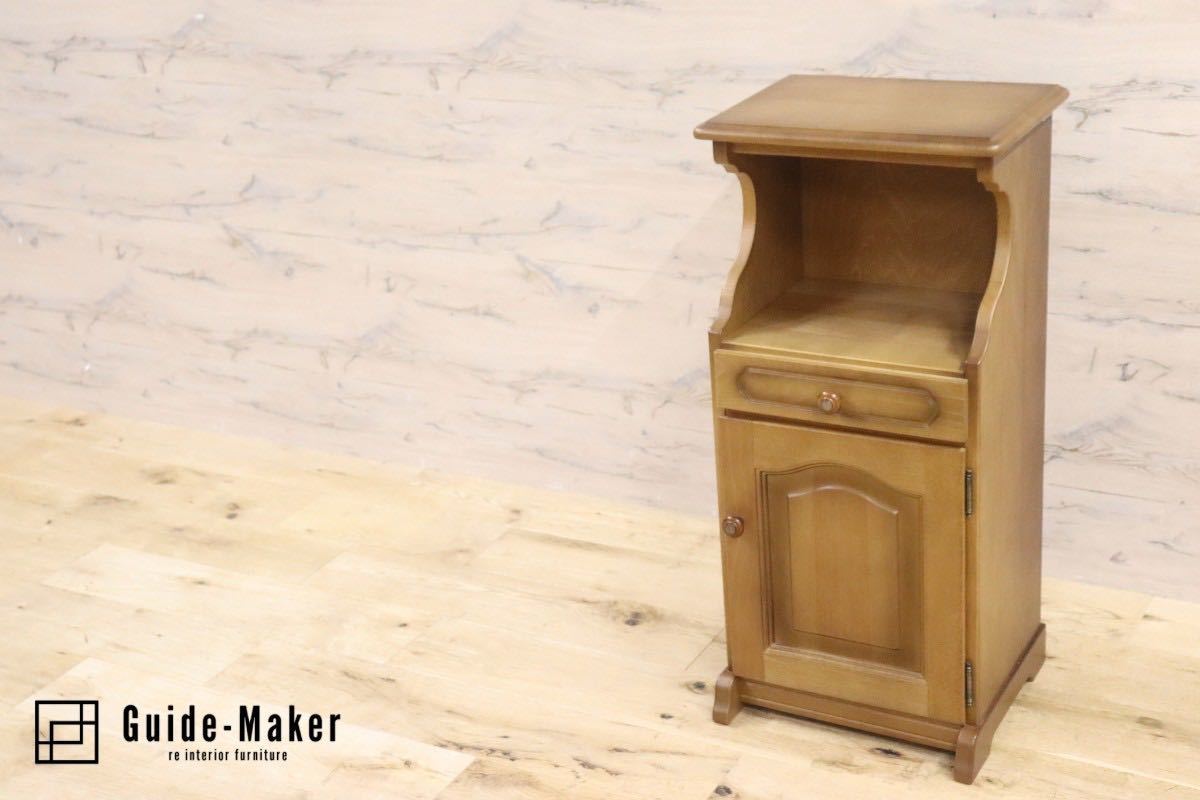 > GMGH259○karimoku / カリモク 花台 電話台 飾り棚サイドテーブル リビング収納 レトロ ナチュラル 美品