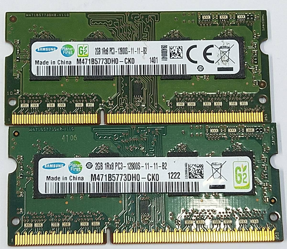 - 【中古パーツ】PC3 ノートパソコン用 DDR3 メモリ SAMAUNG 2GB 1RX8 PC3-10600S-9-10-ZZZ 2GBx2枚 計4GB 送料無料■N(270)