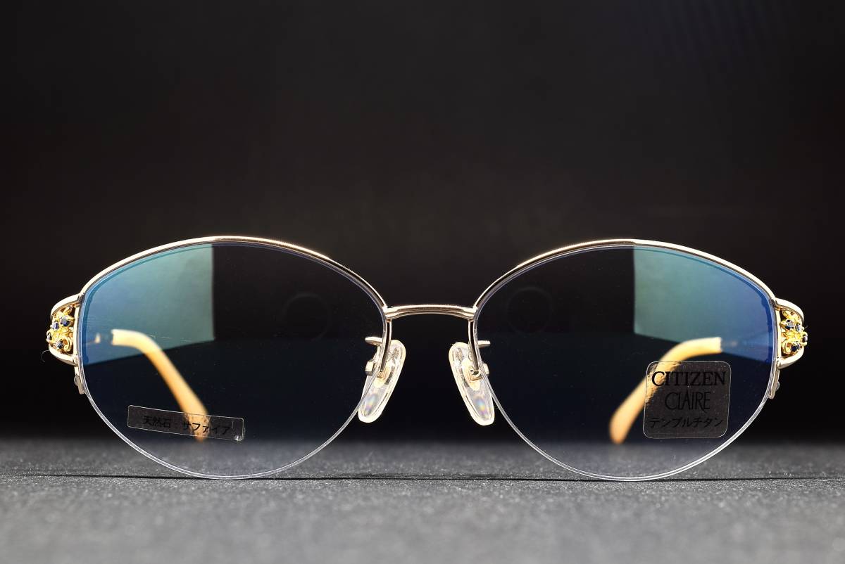 - 上代9万円 未使用品 CLAIRE by CITIZEN 1398 55-15 天然サファイア付 ナイロール メガネ サングラス フレーム シチズン
