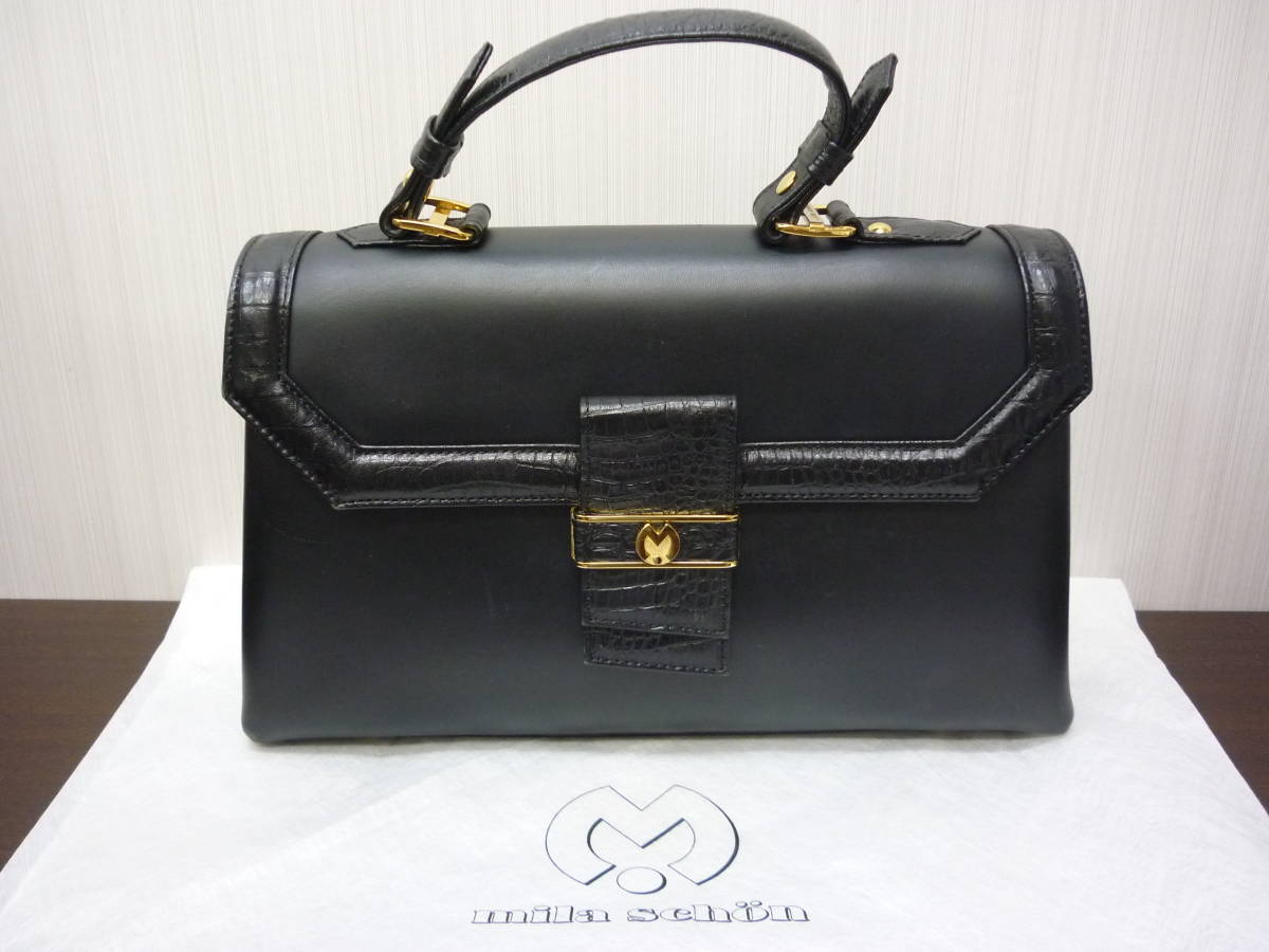 - 難あり mila schon ミラショーン ハンドバッグ ブラック 黒 ●⑦ a