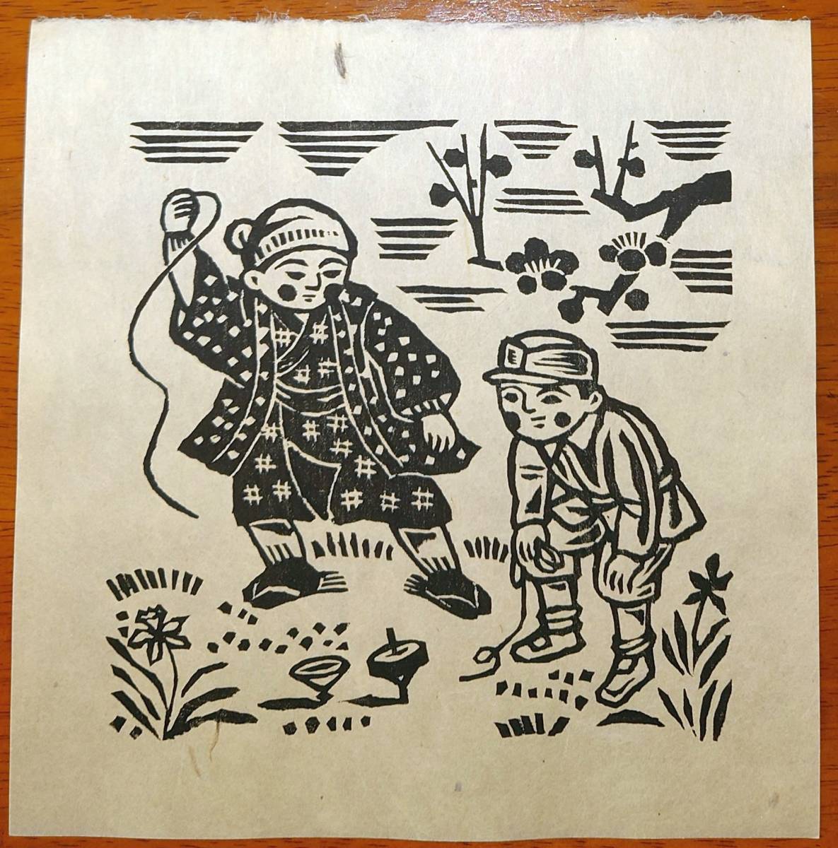 - f23100533〇オリジナル木版画 佐藤米次郎 こままわし みちのく子供の四季 青森県を代表する木版画家 1970年〇和本古書古文書