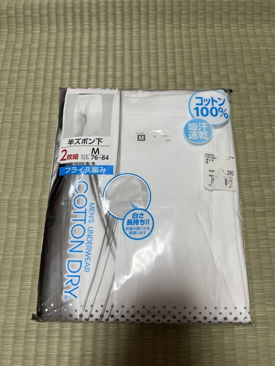 > 半ズボン下 M 2枚組 白 ホワイト フライス編み 吸汗速乾 コットン100% 新品未使用 メンズ 紳士 1280円 人気 デザイン 定番 送料無料