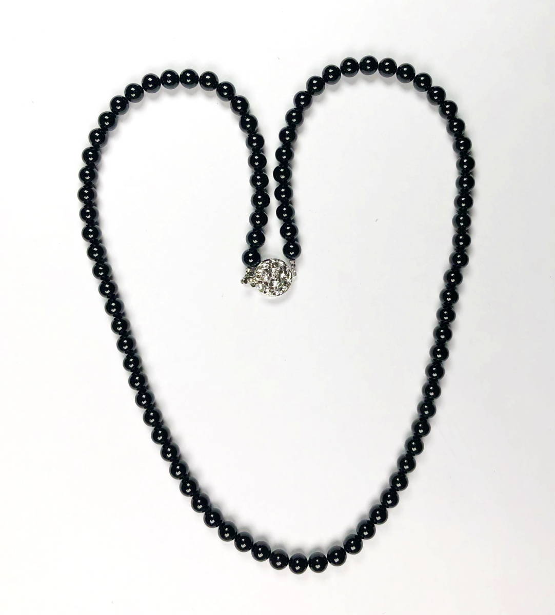 - ヴィンテージ オニキス ネックレス 7mm 60cm シルバー 刻印あり - ac18-12
