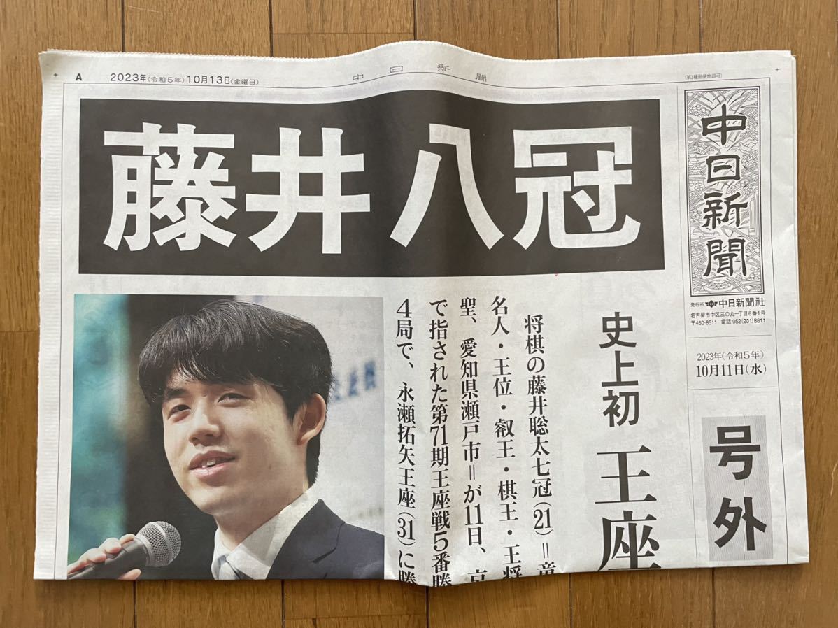 - 藤井聡太 八冠 全冠 史上初 号外 新聞 将棋 令和 5年 2023.10.11中日新聞 見開き 八冠への道 すごろく♪