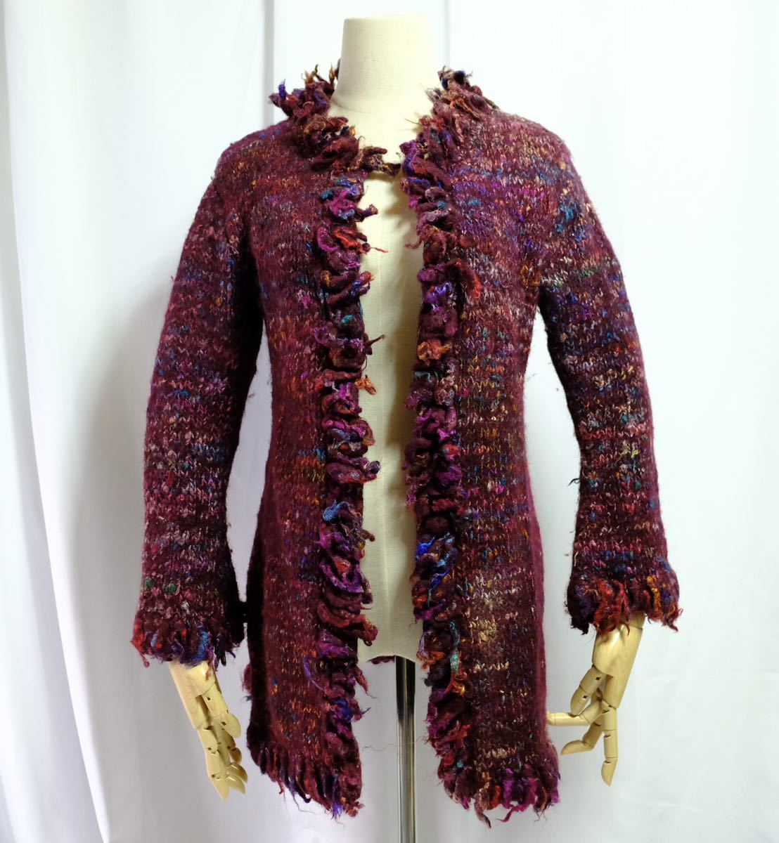 - 【1970s】ビンテージ ミックスニットカーディガン ハンドメイド ユーロ 古着 ツイード セーター ジャケット コート