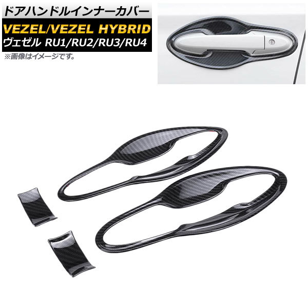 - ドアハンドルインナーカバー ホンダ ヴェゼル RU1/2/3/4 ハイブリッド可 2013年12月~ ブラックカーボン ABS樹脂