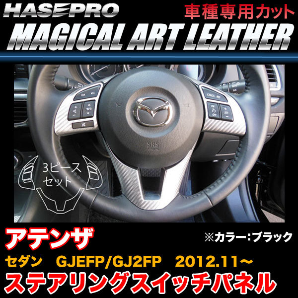 - ハセプロ LC-SWMA7 アテンザセダン GJEFP/GJ2FP H24.11~ マジカルアートレザー ステアリングスイッチパネル ブラック カーボン調シート