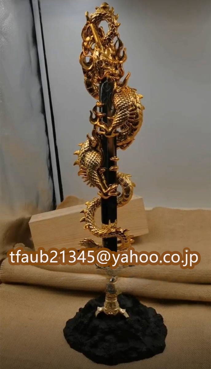 - 「密教法具 寺院用仏具」極上品 倶利伽羅龍王 不動明王 倶利伽羅竜剣 倶利伽羅剣 三鈷剣 台座付き 銅製 高さ58cm