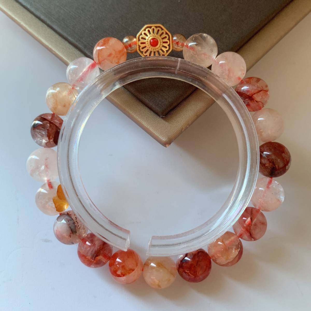 > ◇タンジェリン・クォーツ◇虹入り◇ブレスレット◇パワーストーン◇天然石◇巾着袋付き◇プレゼントにも 025B101981