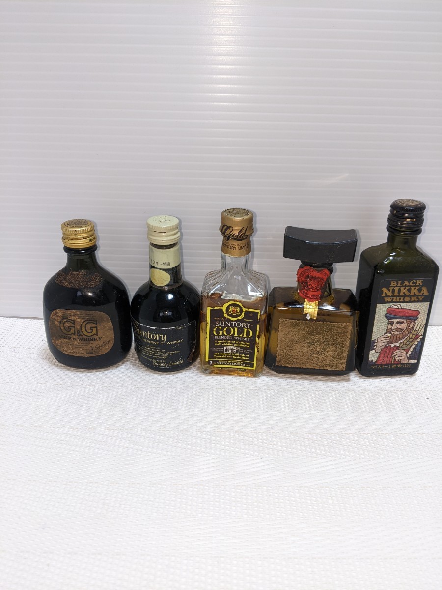 > 古酒、ミニチュアウィスキー瓶5本長期間保存の為、中身が減っています。中身の保証できません。ご了承の上入札お願い致します。H-5-2-3