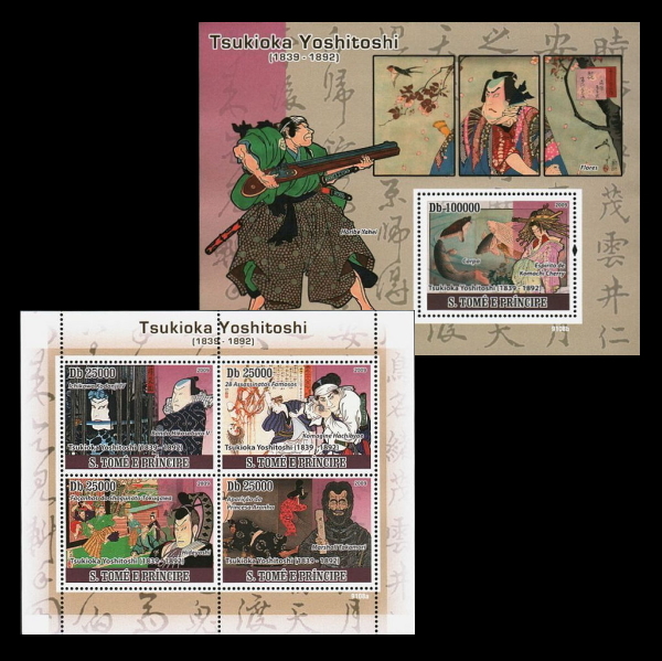 - ■サントメ切手 2009年 浮世絵 / 月岡芳年 シート+4種シート