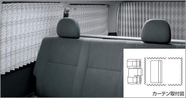 - ハイエース 200系 5型:純正 室内カーテン(プリーツタイプ)(標準ボディ車用)(廃盤 残り在庫わずか)