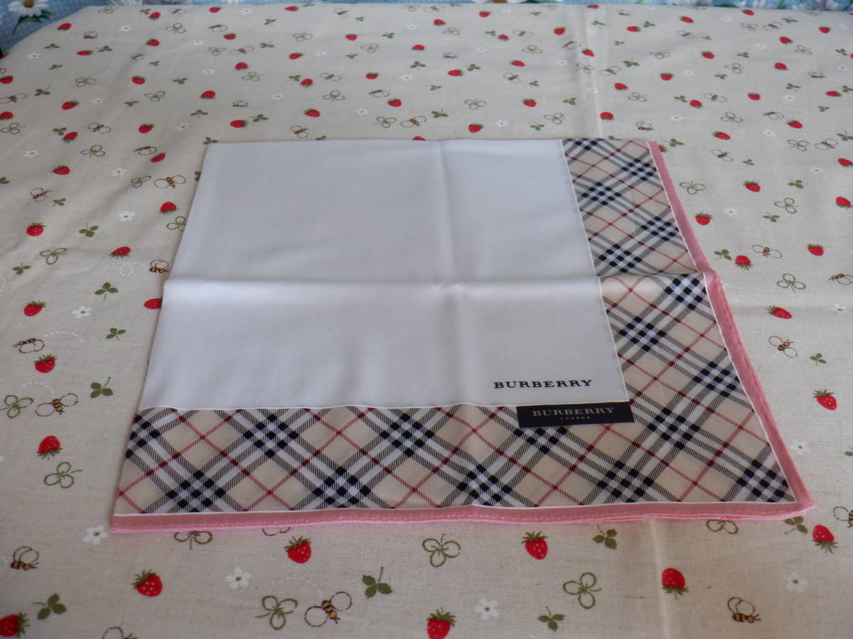 - C10『BURBERRY(バーバリー)★ピンク色の縁どりのシンプルなデザインのハンカチ~50cm角』