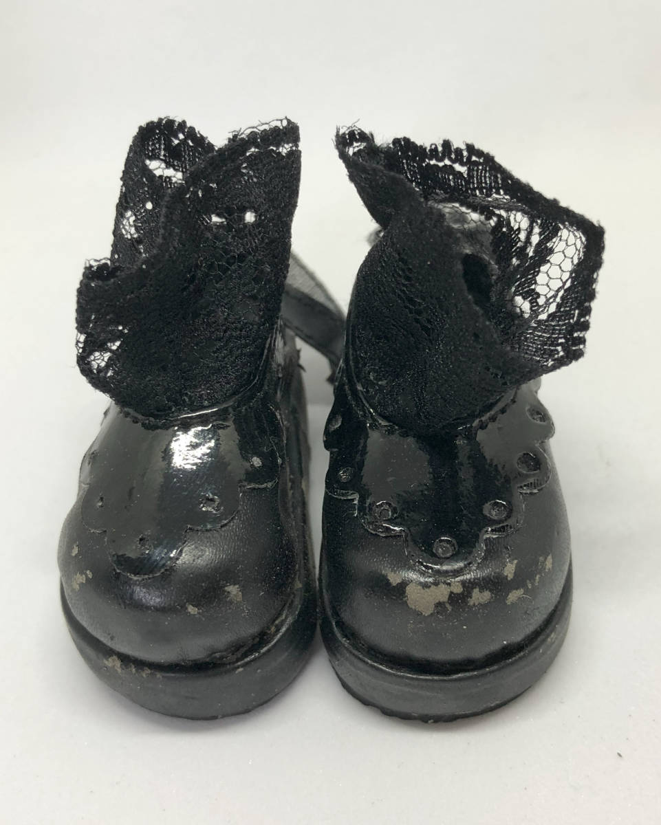 - ジャンク!ドール用シューズ!黒にレース付!中=長さ35㎜位×内幅20㎜弱位!未開封ですが剥げ!剥がれ!カスタム用です!