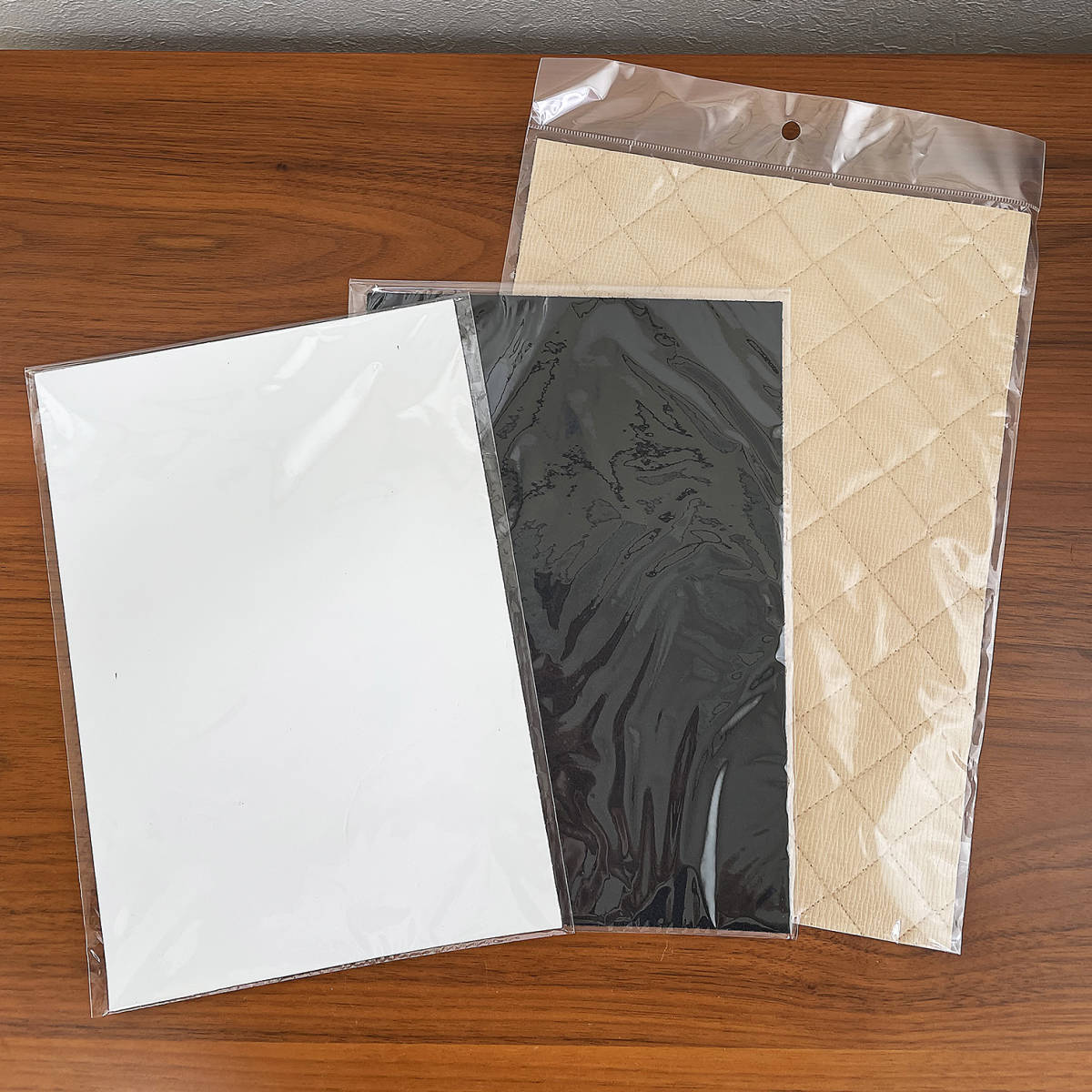 - 未使用 牛革 レザーシート3枚セット A4サイズベージュ系キルト型押し+B5サイズ黒床革+B5サイズ白 日本製 本革 革はぎれ レザークラフト
