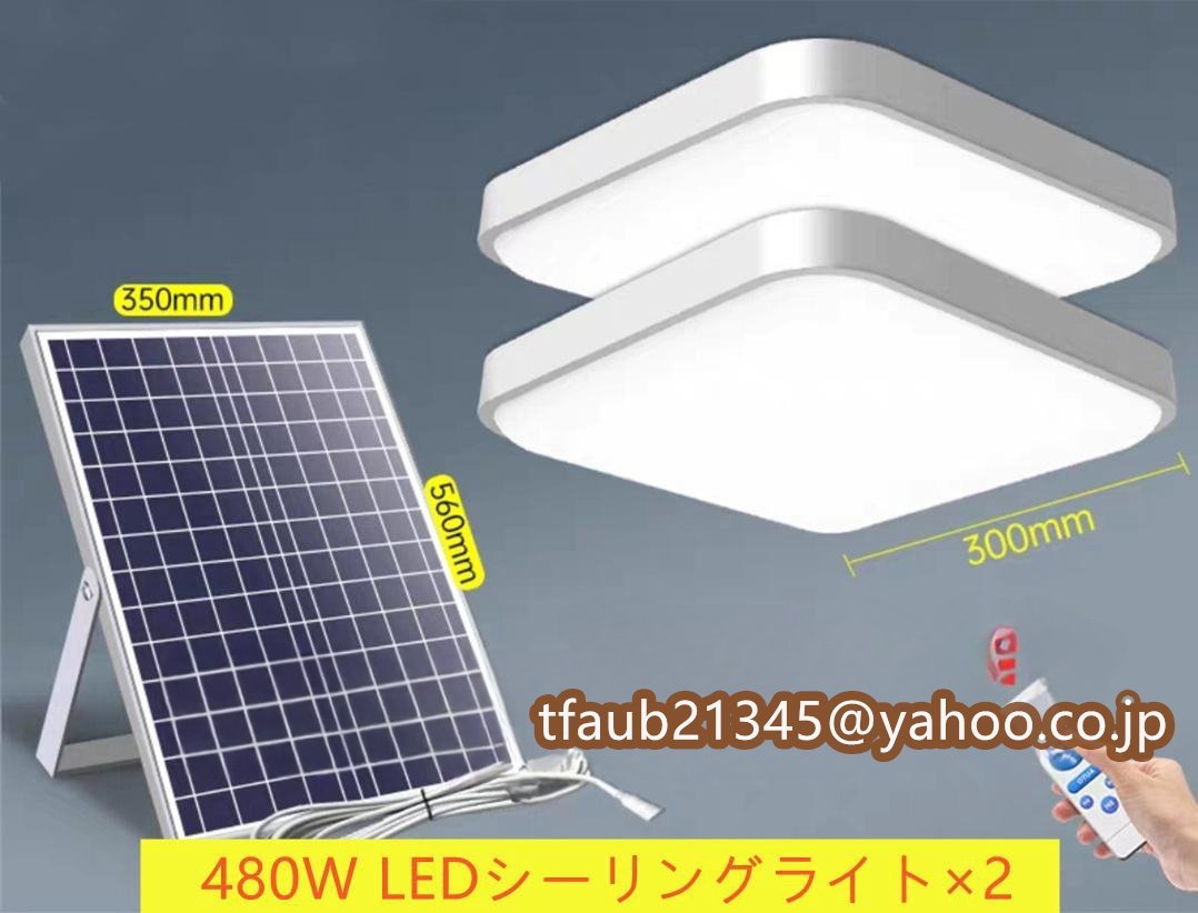 > LEDシーリングライト×2 リモコン付き ソーラーライト ガーデンライト 天井照明 寝室 リビング ベランダ 室内 屋外用ライト 480W