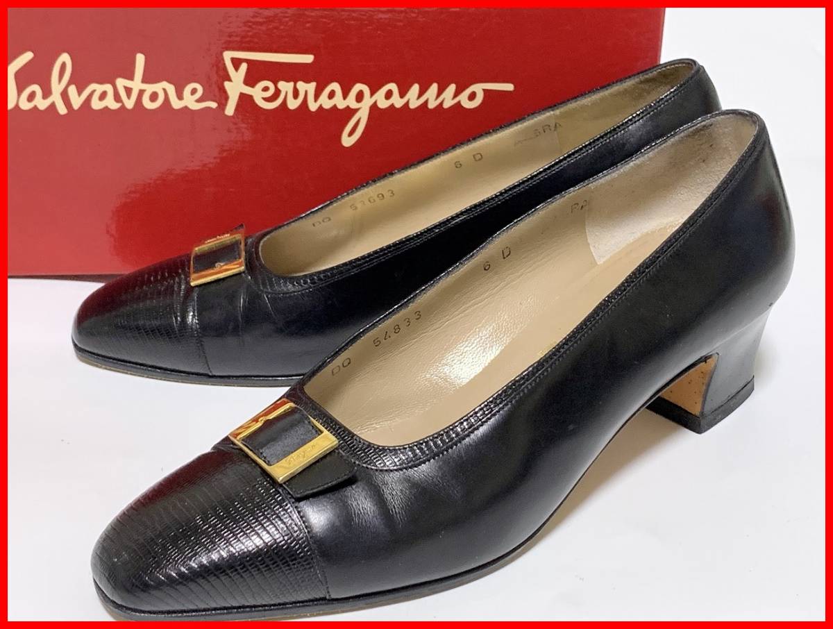 > 即決 Salvatore Ferragamo フェラガモ 6≒23cm パンプス 黒 ブラック レディース F