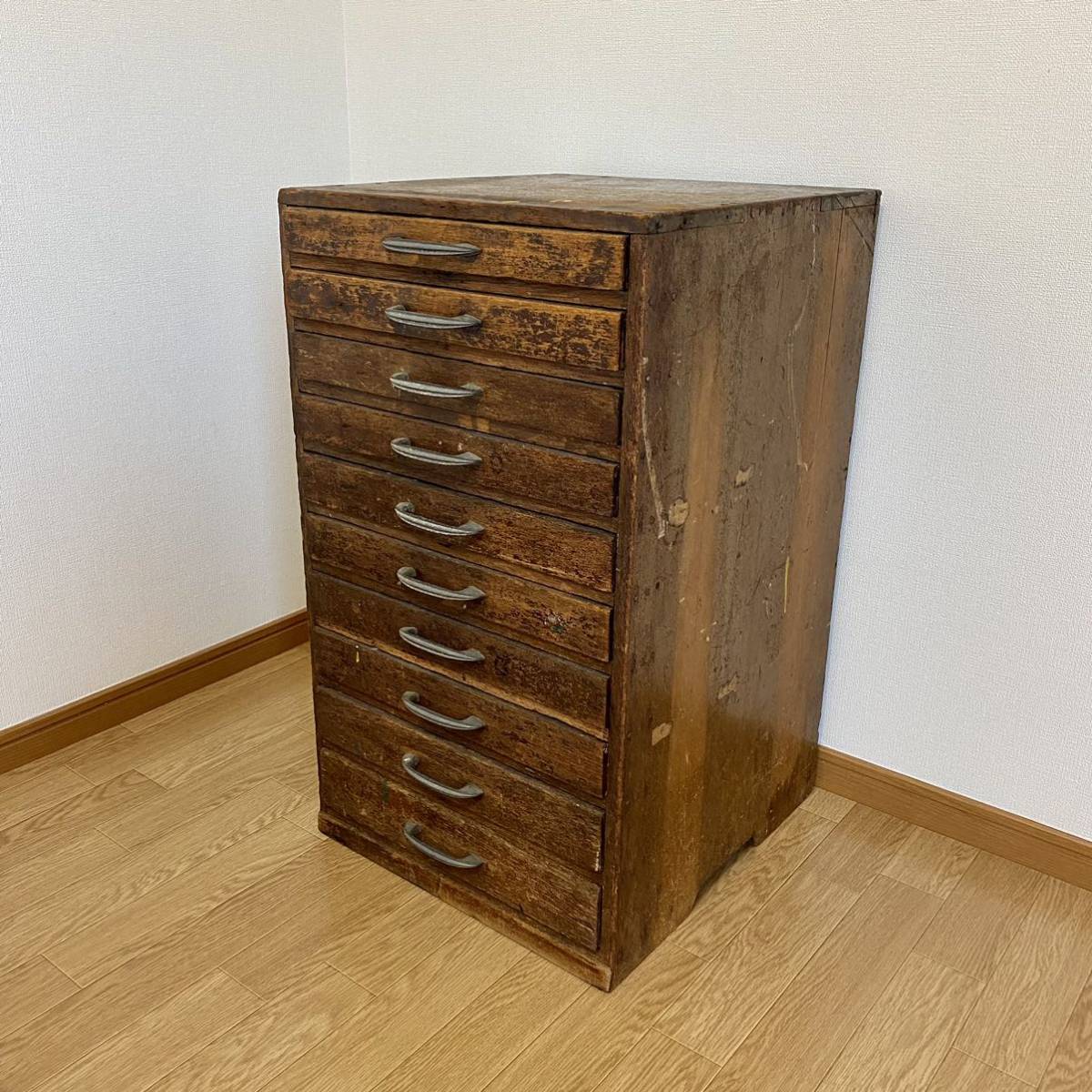 - アンティーク 10杯 木製引き出し 無垢材 / チェスト 収納棚 書類棚 木製 ヴィンテージ