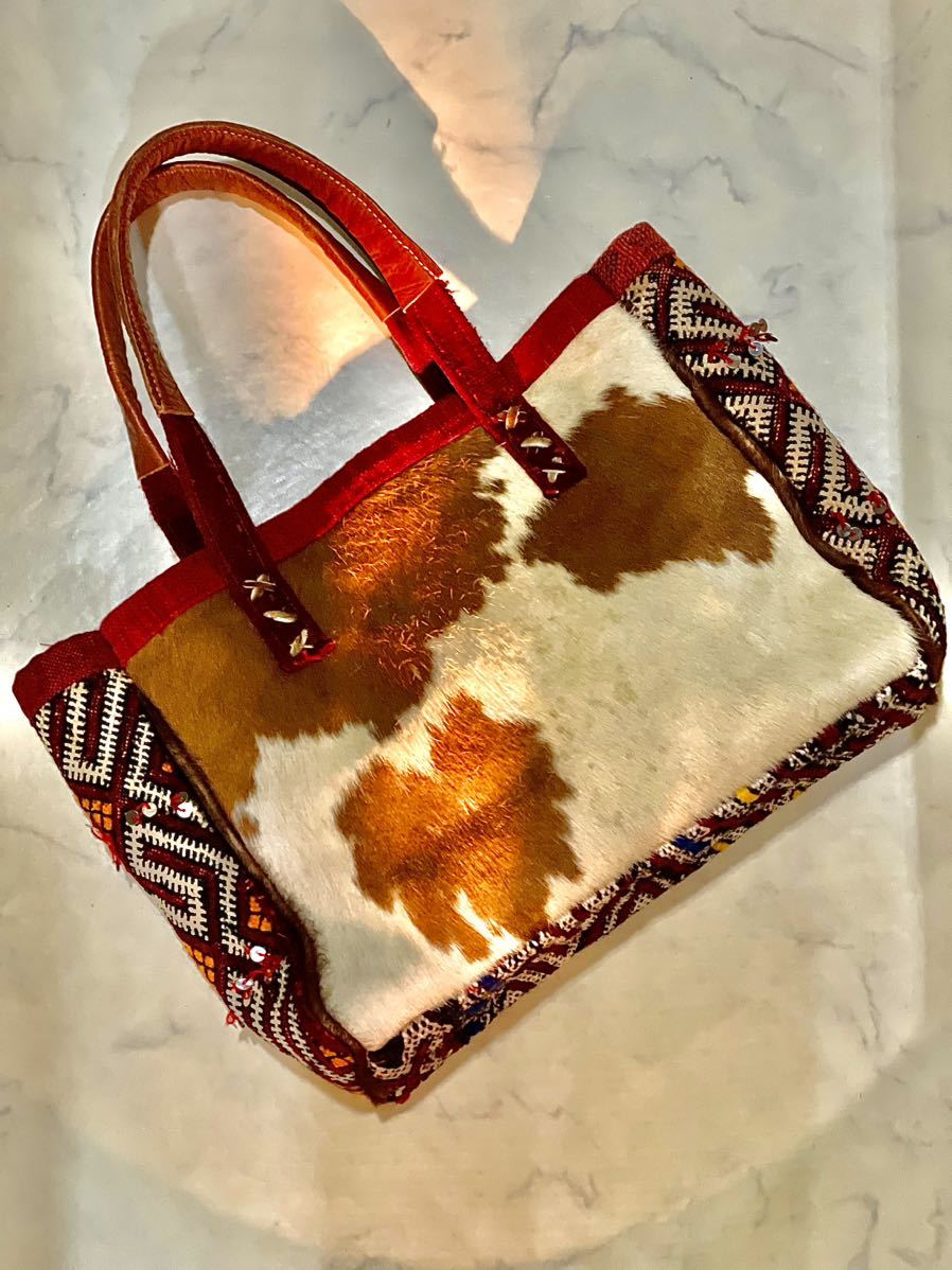 - 一点物 ハラコ 革 レザー 本革 トート バック ライトイヤーズ キリム モロッコ インド パキスタン 民藝 刺繍