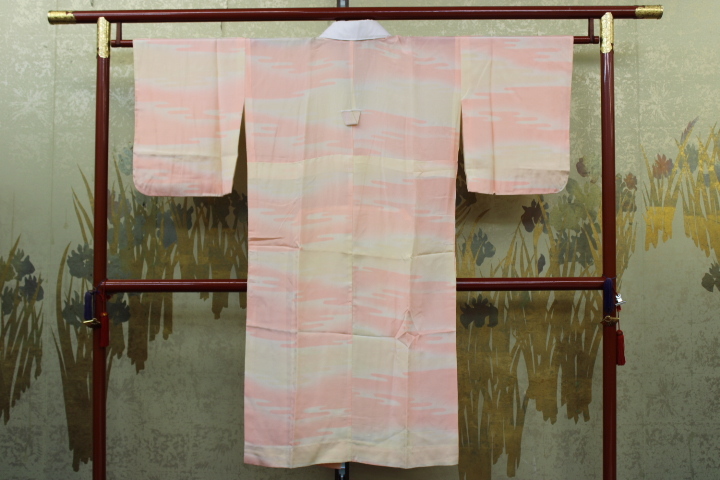 > きもの今昔6098 長襦袢 袖無双身頃単衣 正絹精華織淡いピンク色霞雲ボカシ 目立つ汚れ無 身丈121cm