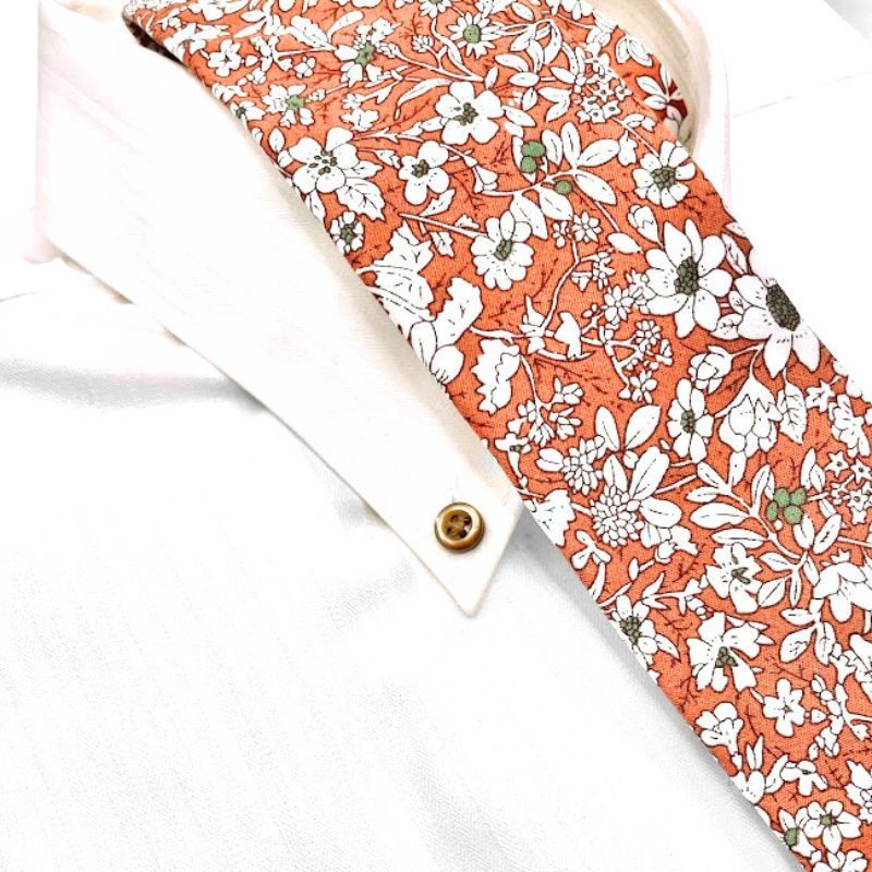 - メンズ ネクタイ オレンジ×白 花柄 ビジネス おしゃれ スリム カジュアル【color 05】