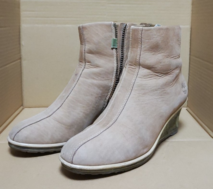 - 868◆ウェッジソールブーツ スウェード ベージュ 茶 ブラウン Timberland ティバーランド W6 23cm ウエッジソール レア 限定 希少 ブーティ