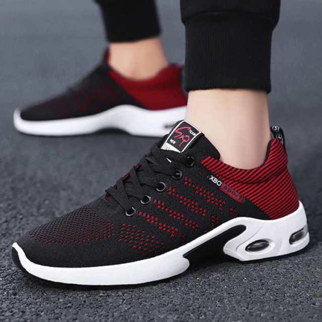 - メンズ スニーカー トレッキングシューズ 防水 登山靴 メンズ 靴 シューズ ウォーキングシューズ アウトドア ブラック&レッド 25cm