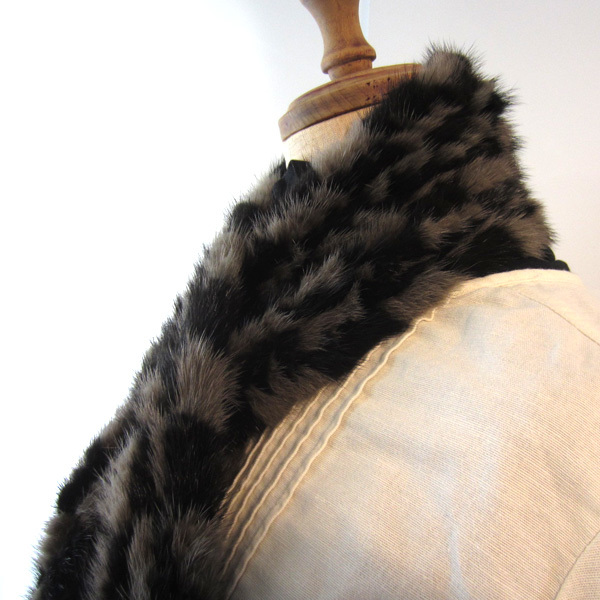 - 美品 ラビットファー 黒&グレーの差し込みマフラー