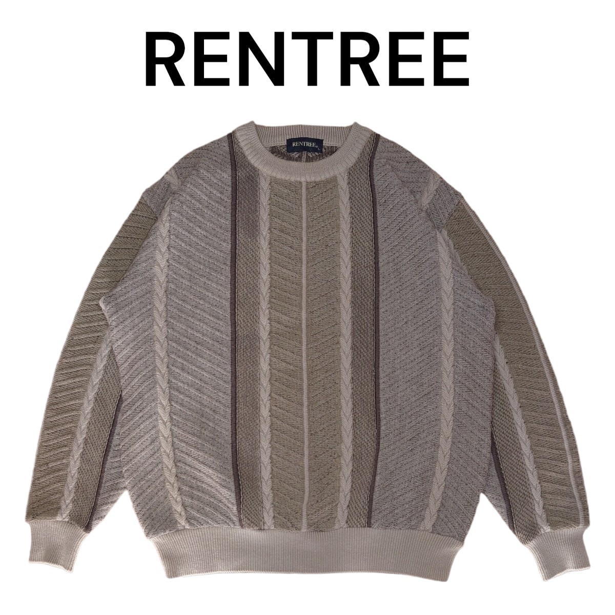 - 古着 総柄 ケーブルニットセーター 昭和レトロ