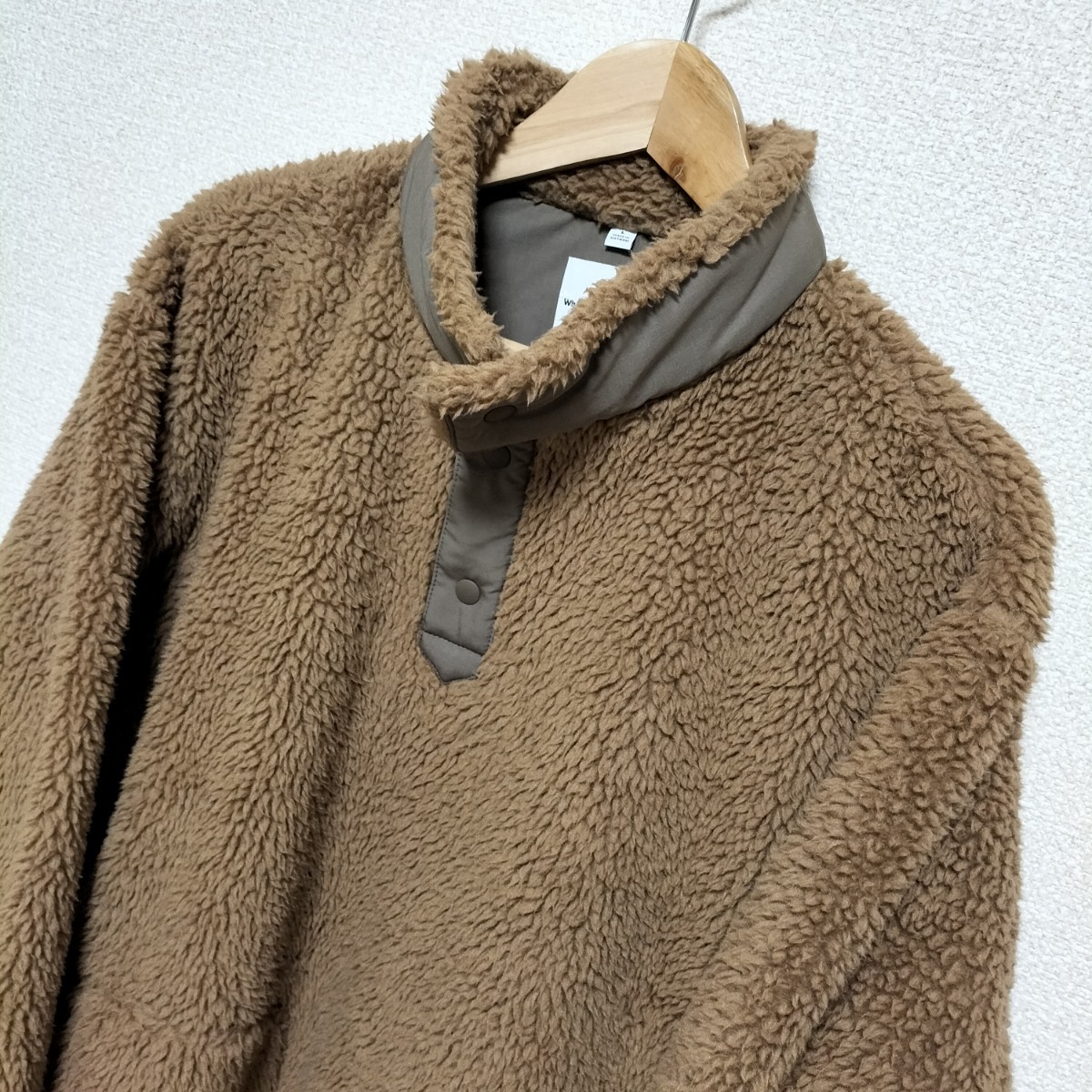 - 綺麗★UNIQLO WhiteMountaineering ボアジャケット スタンドカラー プルオーバー ユニクロ ホワイトマウンテニアリング メンズ L 茶 USED