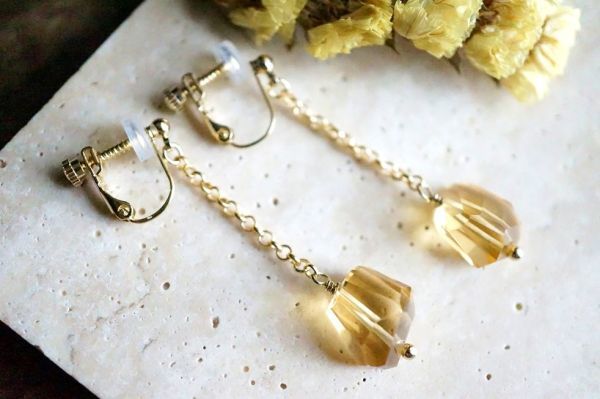 - イヤリング 413 シトリンのラフカットイヤリング 天然石・パワーストーン 黄色の石