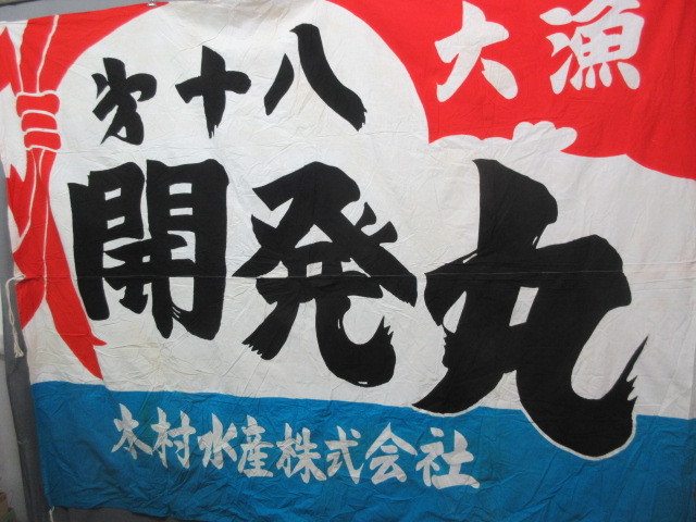 - 【政】33196 大漁旗 開発丸 木綿 のぼり幟 出航 祝完成