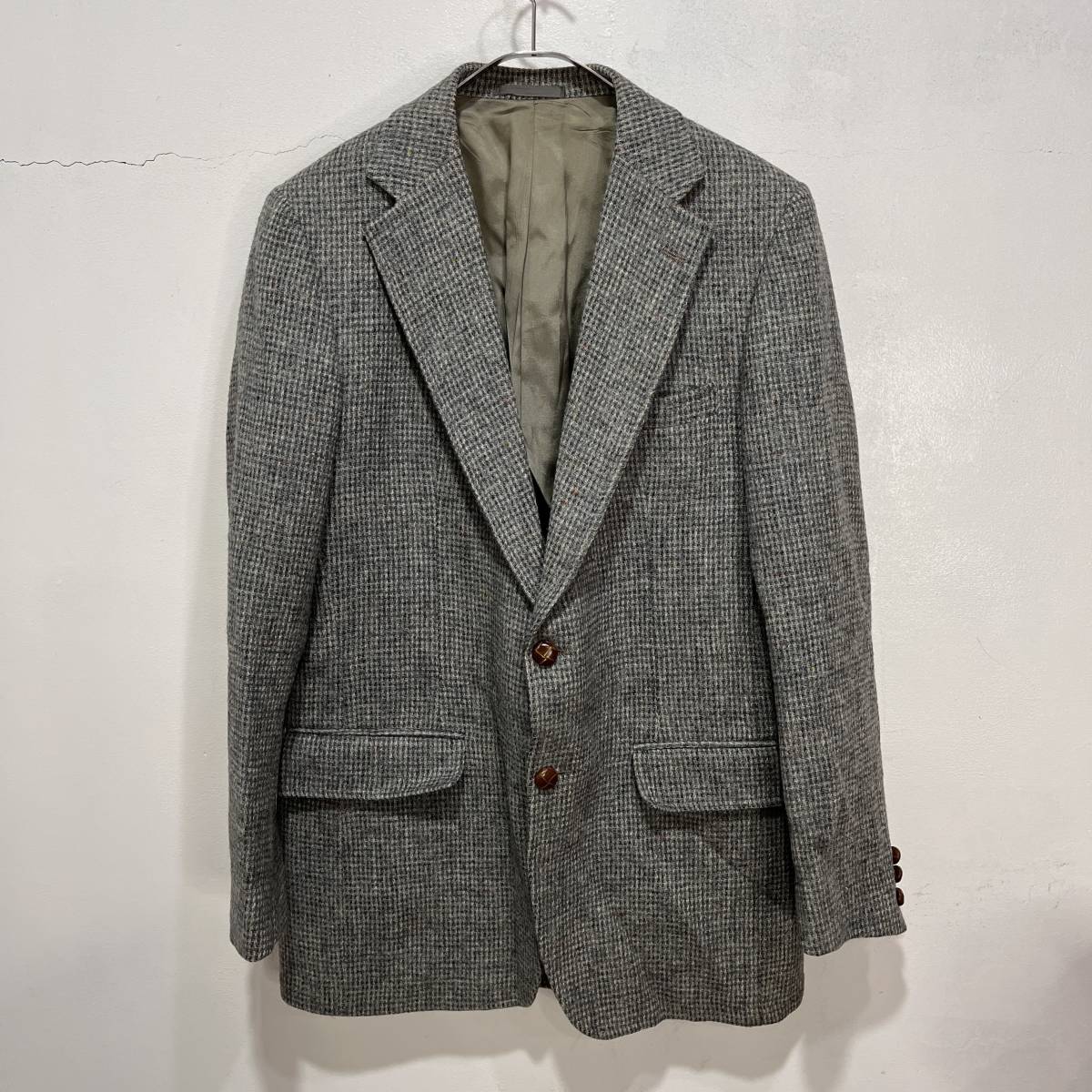 - 送料無料☆80s☆USA製☆HarrisTweed☆ハリスツイード☆ツイードテーラードジャケット☆ウールジャケット☆グレー☆M相当☆L23M