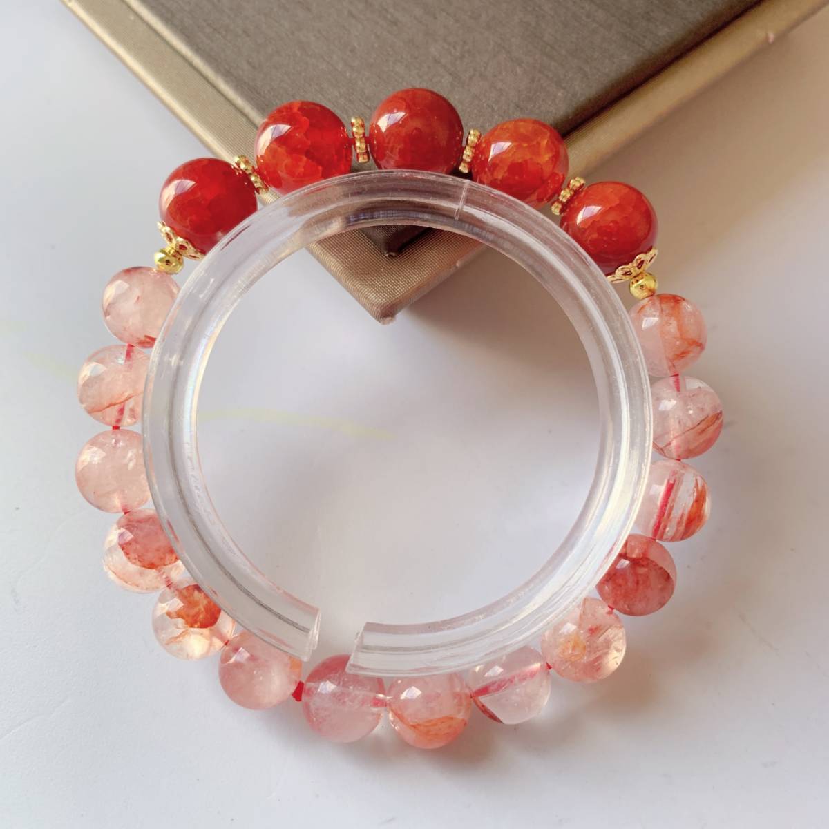 > ◇タンジェリン・クォーツ+龍鱗瑪瑙◇パワーストーン◇ブレスレット◇天然石◇巾着袋付き◇プレゼントにも026B120904