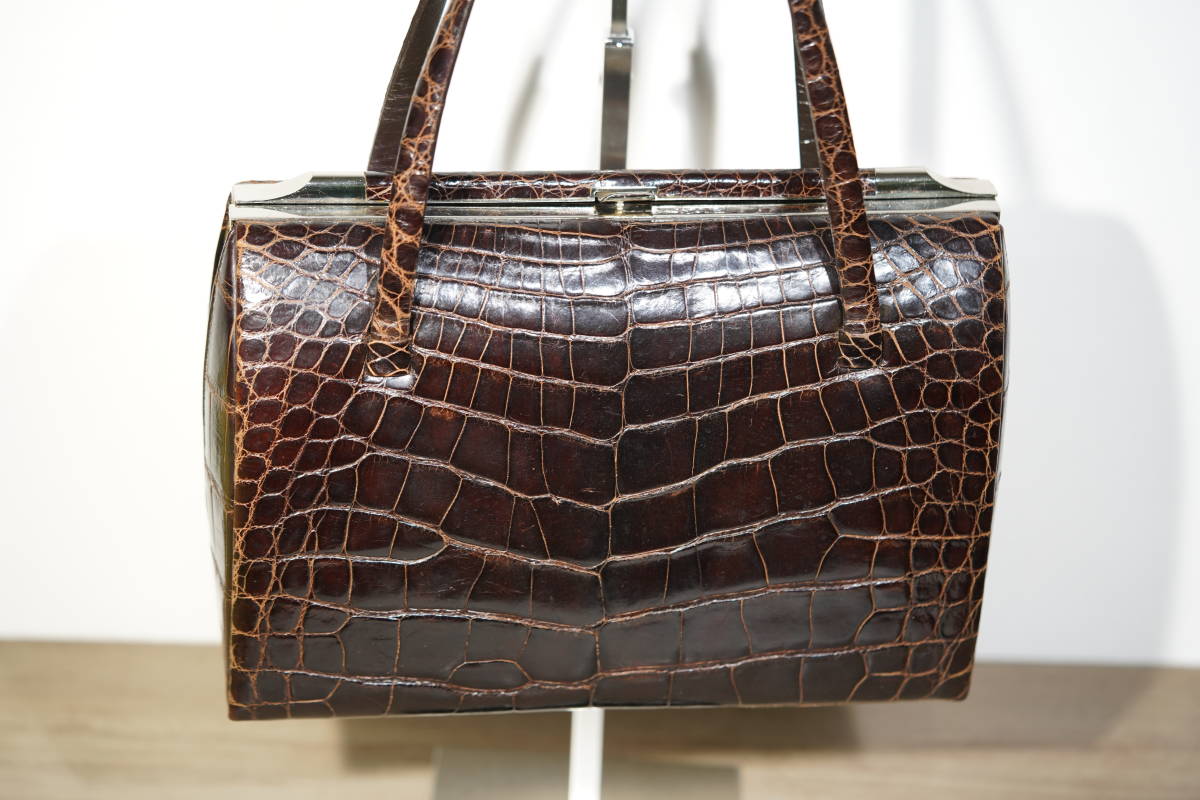 - クロコダイル CROCODILE バッグ がま口 ハンドバッグ ダークブラウン クロコ ワニ革 カバン 鞄 レディース