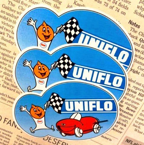 - ステッカー 3枚 セット ESSO UNIFLO エッソボーイ/ アメリカン雑貨 シール 防水 車 バイク レーシング キャラクター USA アクセサリー
