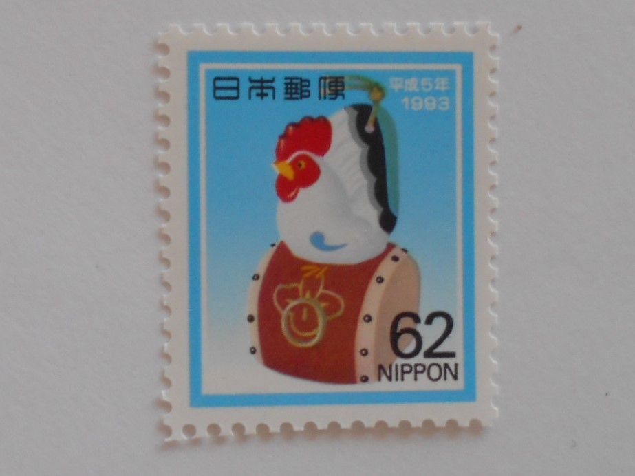 - 1993年年賀切手 太鼓乗りにわとり 未使用62円切手(993b)