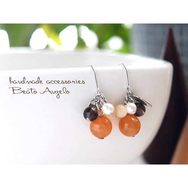 - ◇◇+angelo+天然石レッドアベンチュリンとスモーキークォーツのプチ木の実ピアス(p-061)S オレンジ