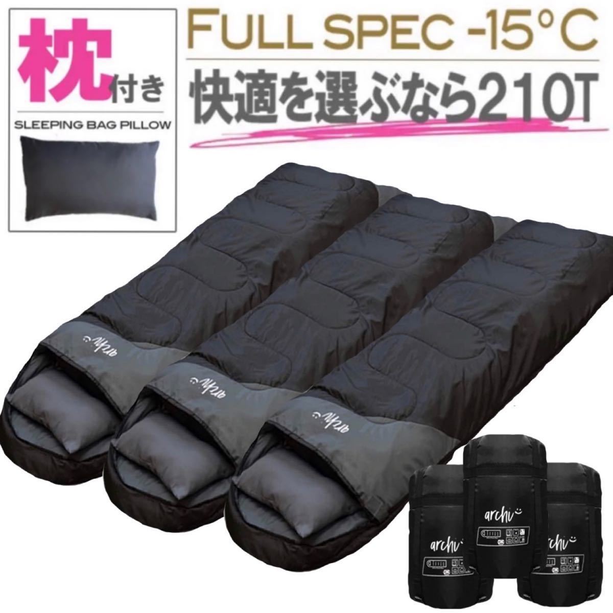 > おすすめ 【3個セット】 archi アーチ 専用枕付き 秋冬用 寝袋 ふかふか シュラフ フルスペック 封筒型 2way 車中泊 キャンプ スノボ 防災