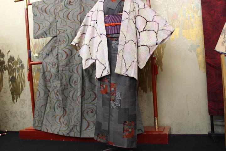 - きもの今昔6247 着物と羽織2点セット シルクウール胴抜き八掛付き仕立てきものと正絹総絞り羽織