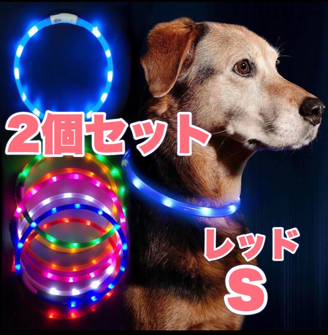 - 2個セット 犬用 LEDライト 首輪 安全 USB 充電 小型犬 蛍光 Sサイズ お揃い かわいい おしゃれ 夕方 夜 散歩