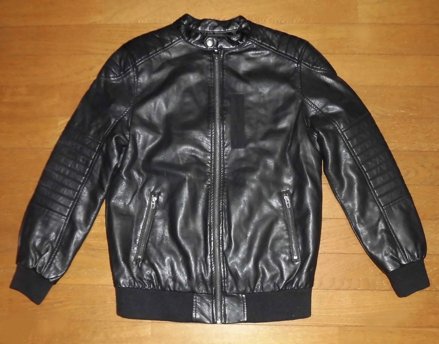 > ZARA KIDS ザラ キッズ 合皮 シングルライダース ジュニア 子供用 レディース 女性にも 立襟 フェイクレザー BLK 164(13-14) 使用少 美品