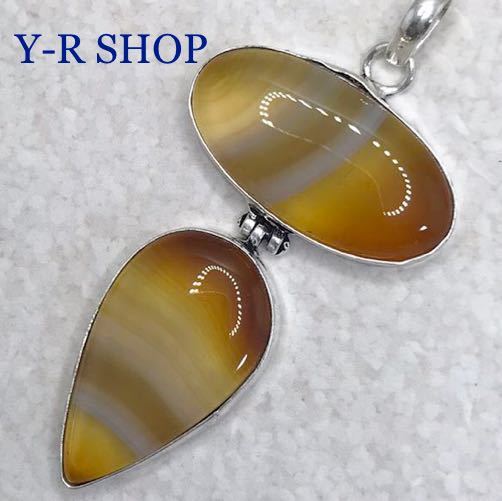 > 天然石★ライトブラウンアゲートのエスニックペンダントトップ ★レディースネックレスシルバー925刻印カラーストーン インド新品宝石Y-R