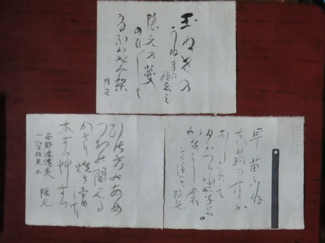 > 広瀬栄一コレクション俳人の書●昭和20年 寒川鼠骨が高浜に疎開していた時の短歌 3枚 東京空襲 茨城県石岡市高浜 231221 古文書