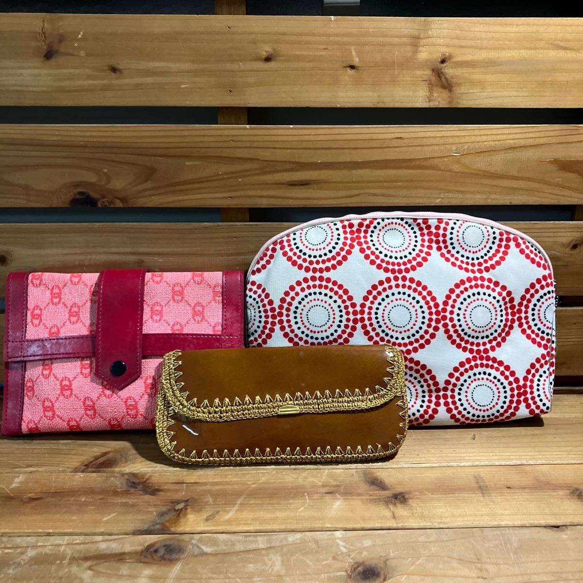 - ビンテージ 布バッグ まとめ 3点セット/ハンドバッグ クラッチ ヴィンテージ 当時物 古い 70年代 管A-5