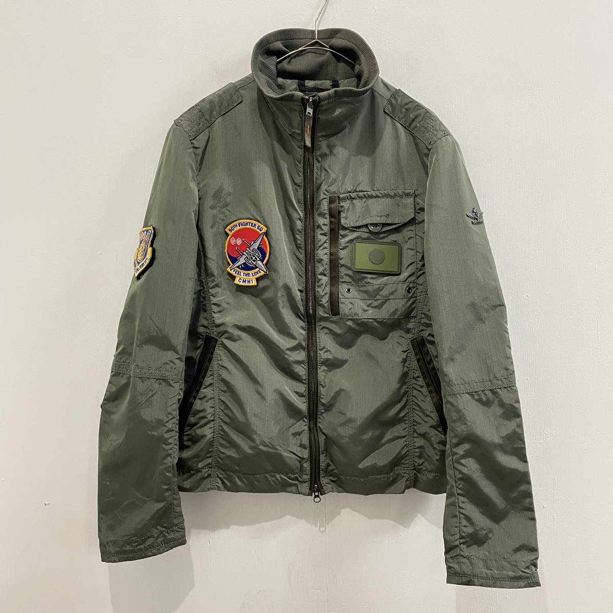 > ☆DEKKER デッカー イタリアブランド スタンドカラーナイロンミリタリージャケット ワッペン付き カーキ サイズM【送料一律/同梱可能】E