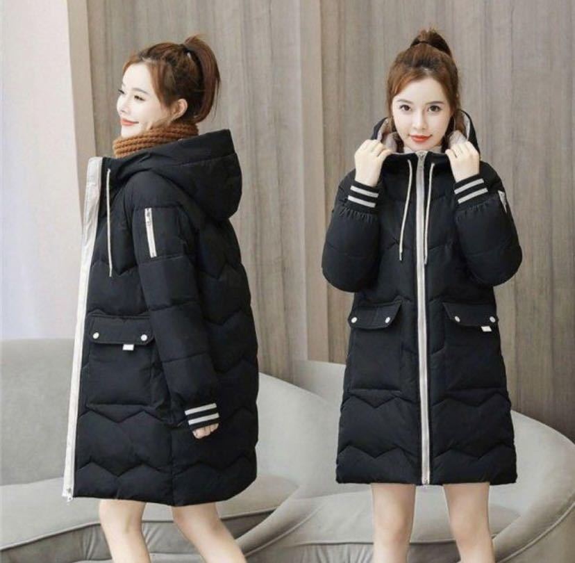 - SALE★Mサイズ レディース 袖口ボーダー ロングコート 中綿コートレディースコート ブラック 【553】軽量 撥水加工
