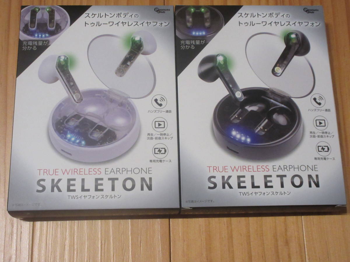 > ◆TWS イヤフォン スケルトン 選択可 セット可 ホワイト ブラック 専用充電ケース ハンズフリー通話 ワイヤレス イヤホン◆新品未開封